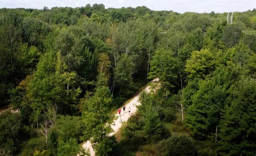 As the Wausau Marathon course winds through the city, crossing many roads and taking a few paths that are only accessible via pedestrian traffic, Eddie and his marathon organizer Tracy Major decided to do the race on the Mount Bay trail instead. This provided for a very flat 13.1 out and back, with many opportunities to get spectators and aid stations setup for him along the way.