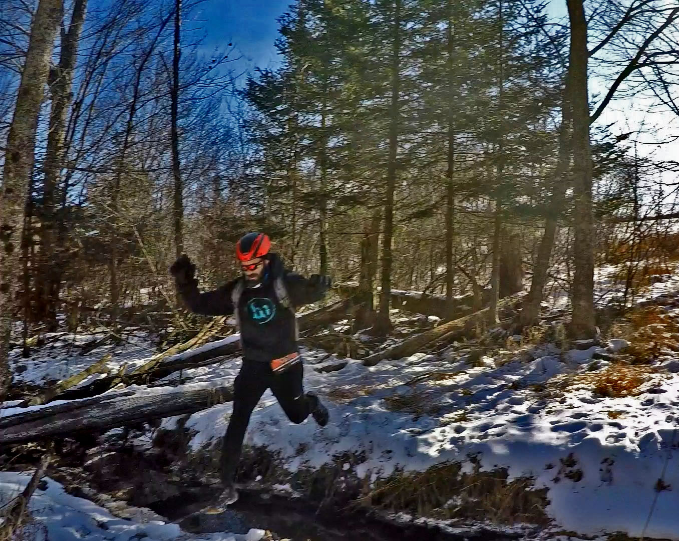 We blew through to the last check point and were back on the bikes, knocking out the first hike section much quicker than I thought we would. This next bike section was longer, about twice as far, but much warmer now that we’d just been running hard through fields, woods and snow. The southern part of the ride took us through the new Trillium trail, put in just this summer. My first time on it, and it’s quite a nice winding path through the woods, even has some sweet wooden bridges.
