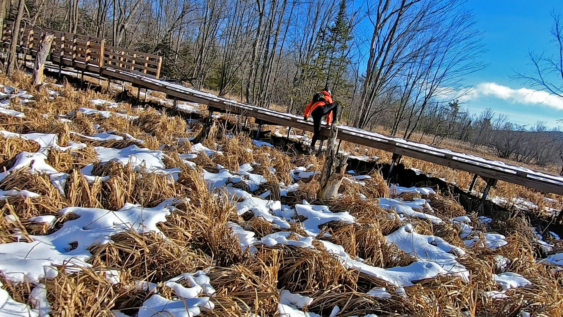 We jumped on the fat tire bikes and flew down the trail towards the northern hiking section. Fat tire bikes were completely unnecessary, again because of our lack of snowfall. All of the bike routes ended up being on paved roads and trails. It was a bit cold on this first bike ride, air temp as around 10 degrees with a little wind, but it was just encouragement to pedal harder.
