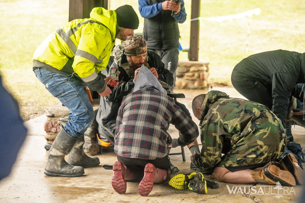 As the 12 hour mark approached (48 miles), night had fallen. And what a cold, wet and windy night it would prove to be. Our base camp setup came equipped with an upgraded heater this year, and we made great use of it. The winds continued to build throughout the night and then the rains set in. I was cold, like cold to the bone. That nagging cold that won’t let you find a bit of comfort when you’re not in the presence of an external heat source. Just sitting in the cold was miserable, and I had on multiple layers, insulated pants, boots, hat and gloves.